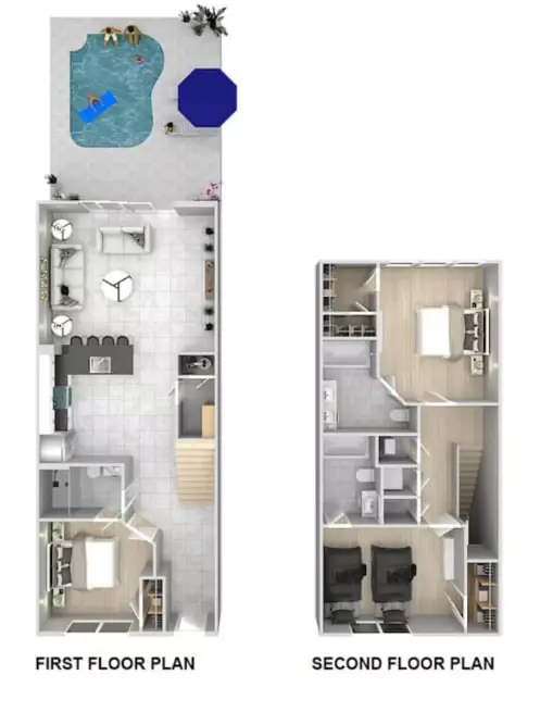 🌴 Private balcony and access to clubhouse, fitness center, and more